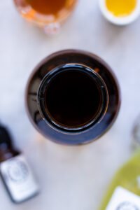 - Sørg for at veje ahornsirup, castille sæbe og jojoba olie op i hver sin lille kop.