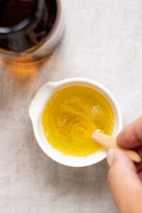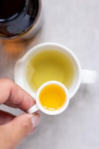 - Hæld jojoba olien ned i dit mål med castille sæbe.