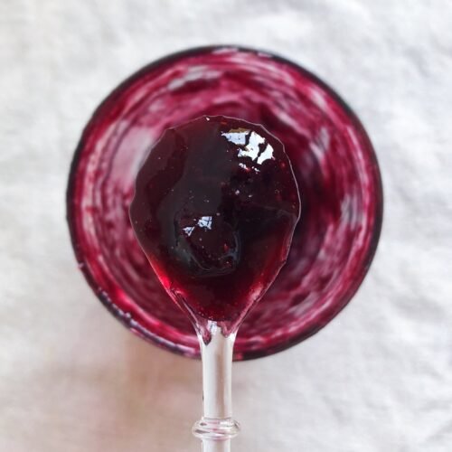 Denne marmelade er fantastisk i en Skovbær Stracciatella is, som vi også laver. Den er dog også himmelsk ovenpå yoghurt eller på et stykke surdejsbrød. Ja den er bare skøn og indeholder naturligvis hverken tilsat pektin eller lignende, blot 5 uraffinerede ingredienser, og kræver blot lidt tid og varme og så har man den smukkeste og lækreste hjemmelavede marmelade.
