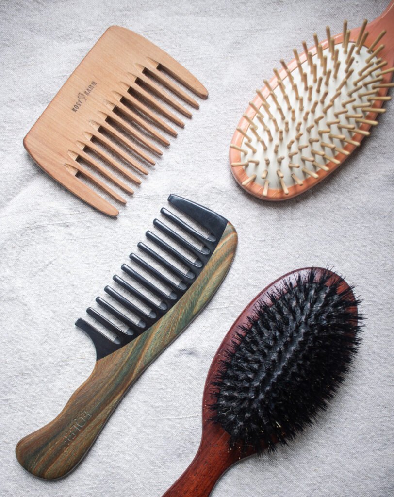 Nedenfor har jeg lavet en liste over de redskaber jeg bruger til at rede og børste hår. De er alle naturlige og kan forbedre hovedbunden og hårets sundhed generelt hvis de bruges jævnligt.