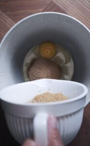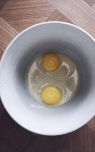 - Slå to hele æg ud i en medium røreskål.