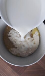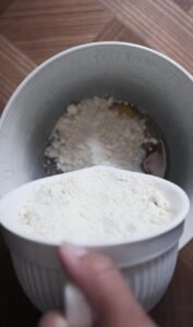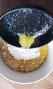 - Tilsæt melet.