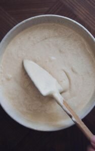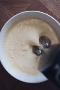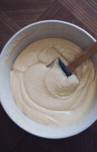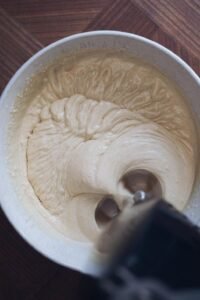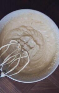- Pisk på max indtil du opnår en tyk og luftig dej, med en konsistens som flødeskum.