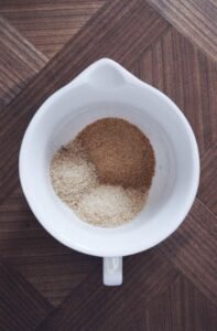 - Vej rørsukker, panela og vanillesukker af.