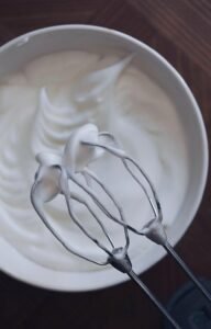 - Pisk hviderne på max hastighed til de danner en stiv men blød hvide.