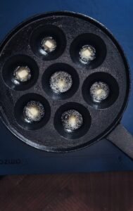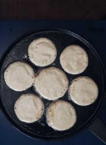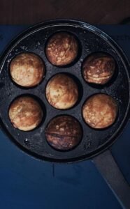 - Varm din pande (dette step er meget vigtigt), en kold pande er det værste en æbleskive ved, så varm den i 5-10 min ved mellem-høj varme inden du begynder at bage æbleskiverne.