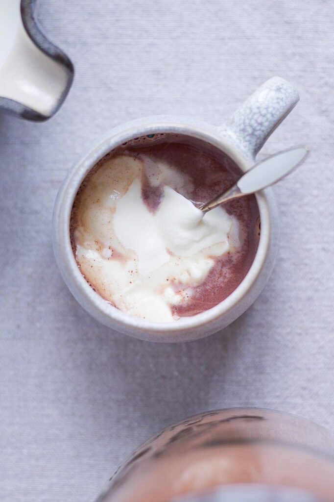 Så jeg måtte lave mit eget. Da jeg desværre ikke havde mulighed for at lave en traditionel “chocolat chaud” som denne her! Hver evigt eneste gang der kom en ind i caféen, som bestilte en varm chokolade. Så jeg fandt ud af at lave dette instant pulver istedet, som jeg så let kunne bruge i 70 grader varm mælk og toppe med flødeskum og chokoladedrys.