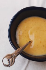 - Tag smørret ud af køleskabet. Vej 80g af og skær det i 6 store tern. Lad det stå og blive blødt imens du forbereder din curd.