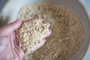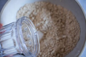 • Smuldr fedtet i melet, det er ret vigtigt dit oksefedt har stuetemperatur så du ikke ender med store hårde fedtklumper i brødet, det samme gælder hvis du bruger smør,