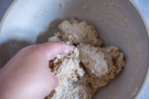 • Ælt med en hånd, det er nok lettere klistret i starten men bliv ved.