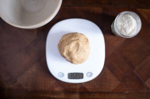 • Kværn enkornet eller afvej mel fra pose, hvis du ønsker det (hver dog opmærksom på at opskriften her er lavet til friskmalet mel) Afvej fedt, salt og danskvand.