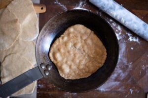 • Varm en pande til den er rygende hed og bag brødene enkeltvis ca. 2-3 minutter per side, så de ikke bliver sorte, medmindre man kan lide det selvfølgelig.