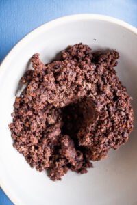 - 3 spsk Mørk 100% Chokolade (usødet ren chokolade, jeg hakker det inden jeg laver dadelmassen i min food processor)