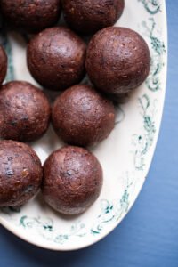 Disse dadelkugler er nemlig ret lækre og helt uden nødder og tilsat sukker. Så det er sådant set en god ting at få der ved eftermiddags tid inden vi skal sætte os ved et dejligt bord med velsignelser.