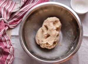 - Når dejen er samlet pakker du den ind i et stykke bagepapir og lader den stå og udvikle sig til næste dag i et svalt rum. Helst ikke på køl men i et køligt rum (har du ikke sådant et rum, så stil den på køl og tag den ud et par timer før du skal bage dagen efter)