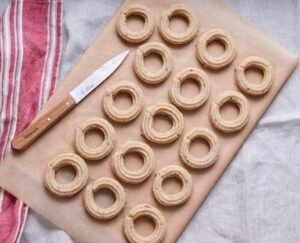 - Placer dine frosne kranse på bagepapiret med godt mellemrum.