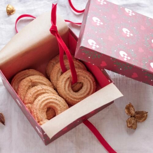 - Put dem i kagedåser i metal med papir eller bind dem med bånd og pak dem ind som en værtindegave, som vist på billedet her.